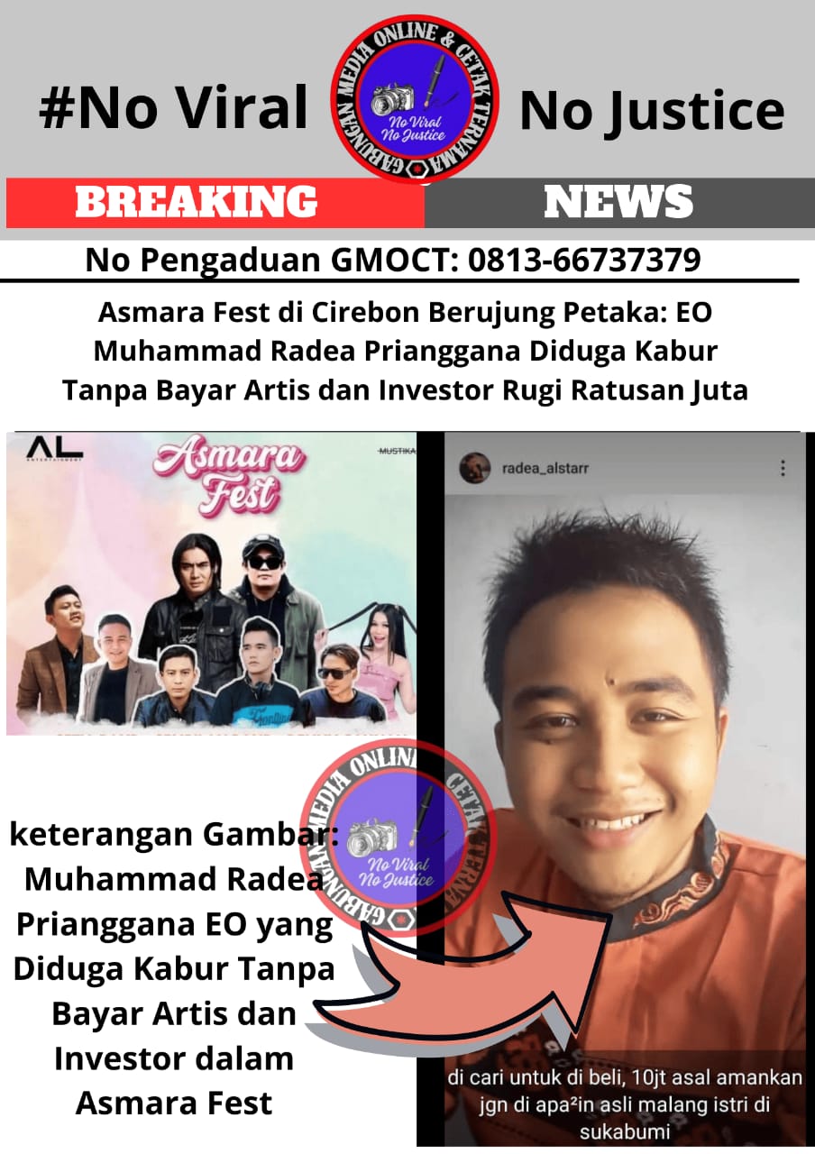 Asmara Fest di Cirebon Berujung Petaka: EO Muhammad Radea Prianggana Diduga Kabur Tanpa Bayar Artis dan Investor Rugi Ratusan Juta